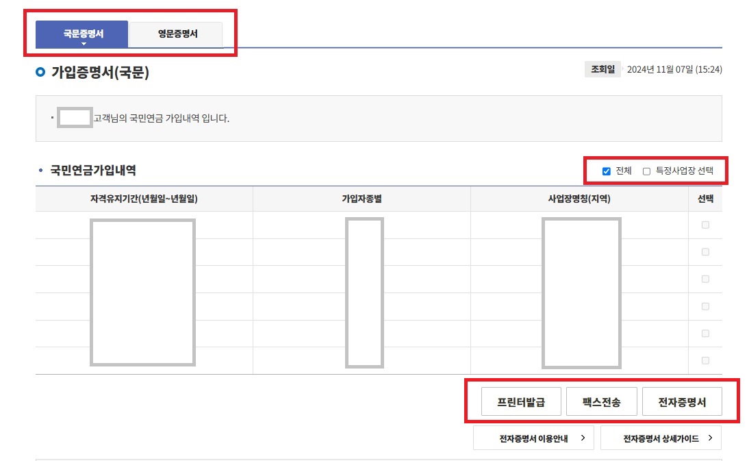 그래서 국민연금가입증명서가 재직증명서나 경력증명서로도 사용되기도 한다고 하는데요.