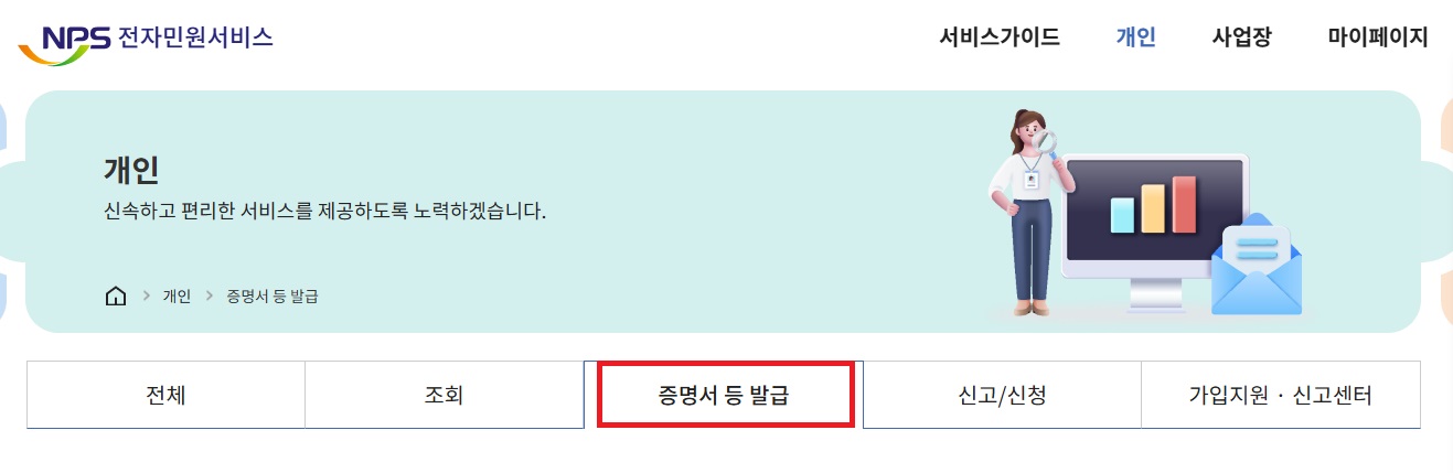 국민연금가입증명서 발급