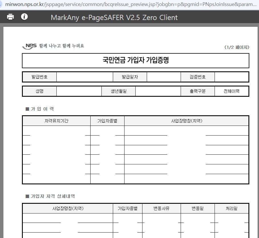 국민연금가입은 지금까지의 직장 이력도 함께 볼 수가 있어서 회사 이직이나 연금 만기 수령, 혹은 정부지원을 받아야 하는 경우에 증명서가 필요할 수 있습니다.