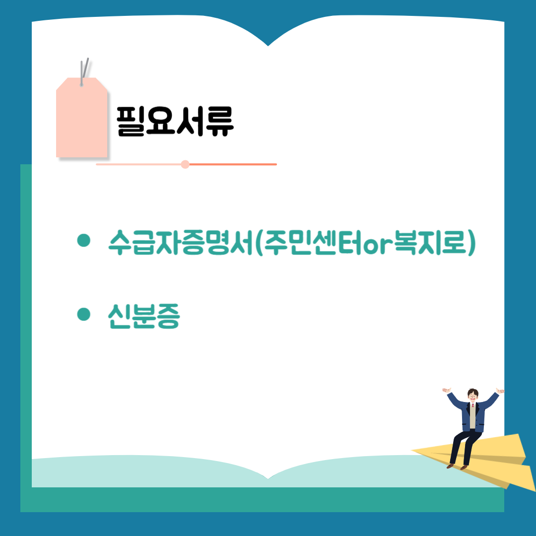 기존 통장 개설 시에 필요한 서류에 반드시 수급자증명서를 첨부하셔야 합니다.