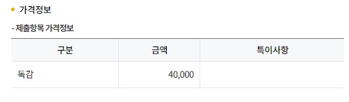 상세분류 옆 가격정보 "세부"를 클릭하면 아래와 같이 금액, 가격정보를 바로 확인하실 수가 있어요.