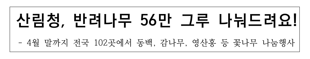 반려나무 나누어주기 행사는 4월 말까지 전국적으로 실시합니다.