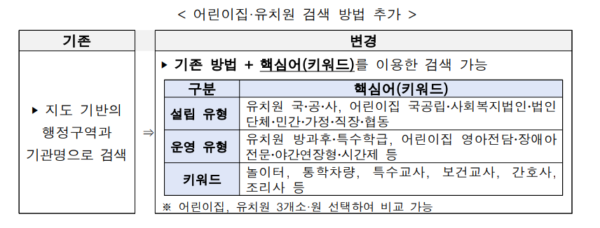 어린이집 유치원 비교검색