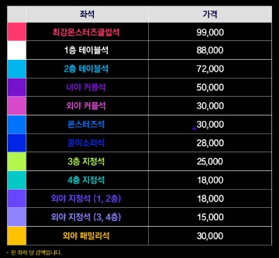 각 좌석당 예매수수료 1,000원이 발생합니다.