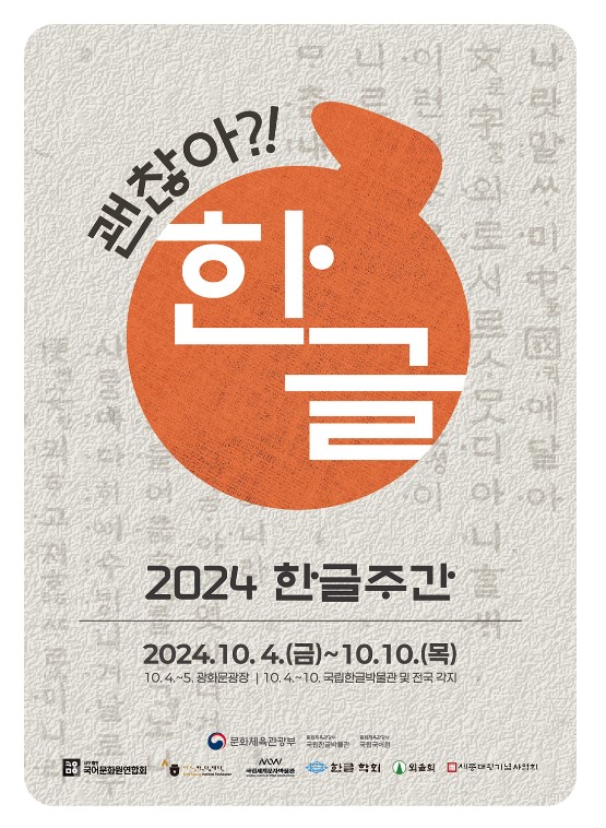한글 주간은 세계인이 함께 참여하는 문화축제를 열어, 10월 9일 한글날을 기념하며, 한글의 가치를 되새기고자 문화체육관광부가 지정한 기간입니다.